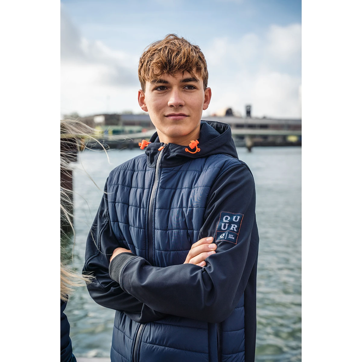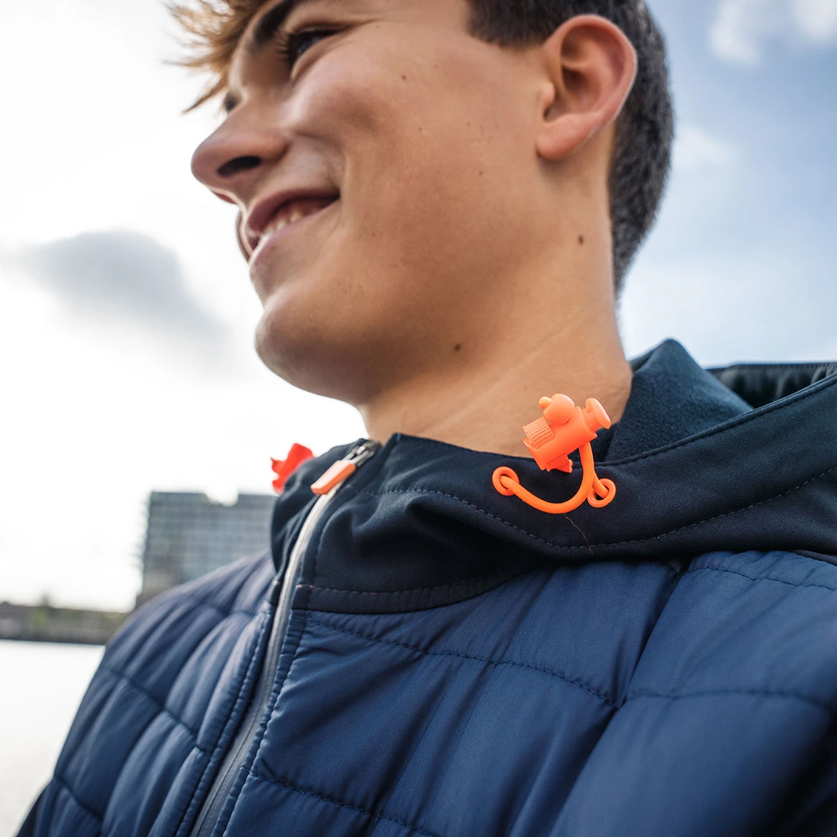 - vaste capuchon met zachte binnenvoering en elastisch aansnoerkoord met stoppers