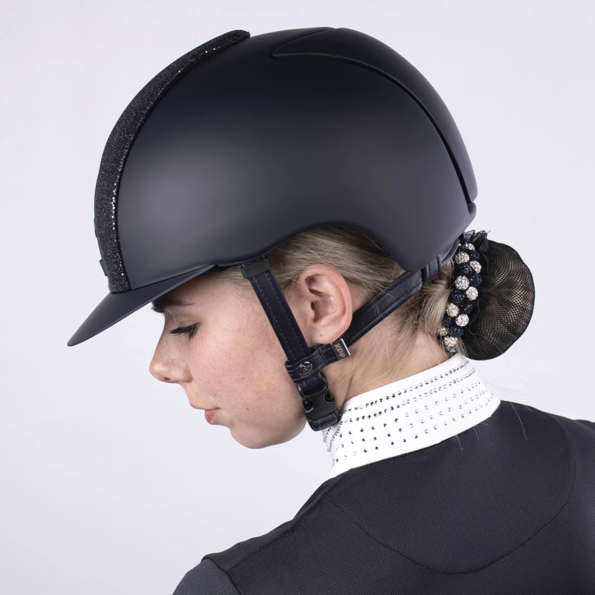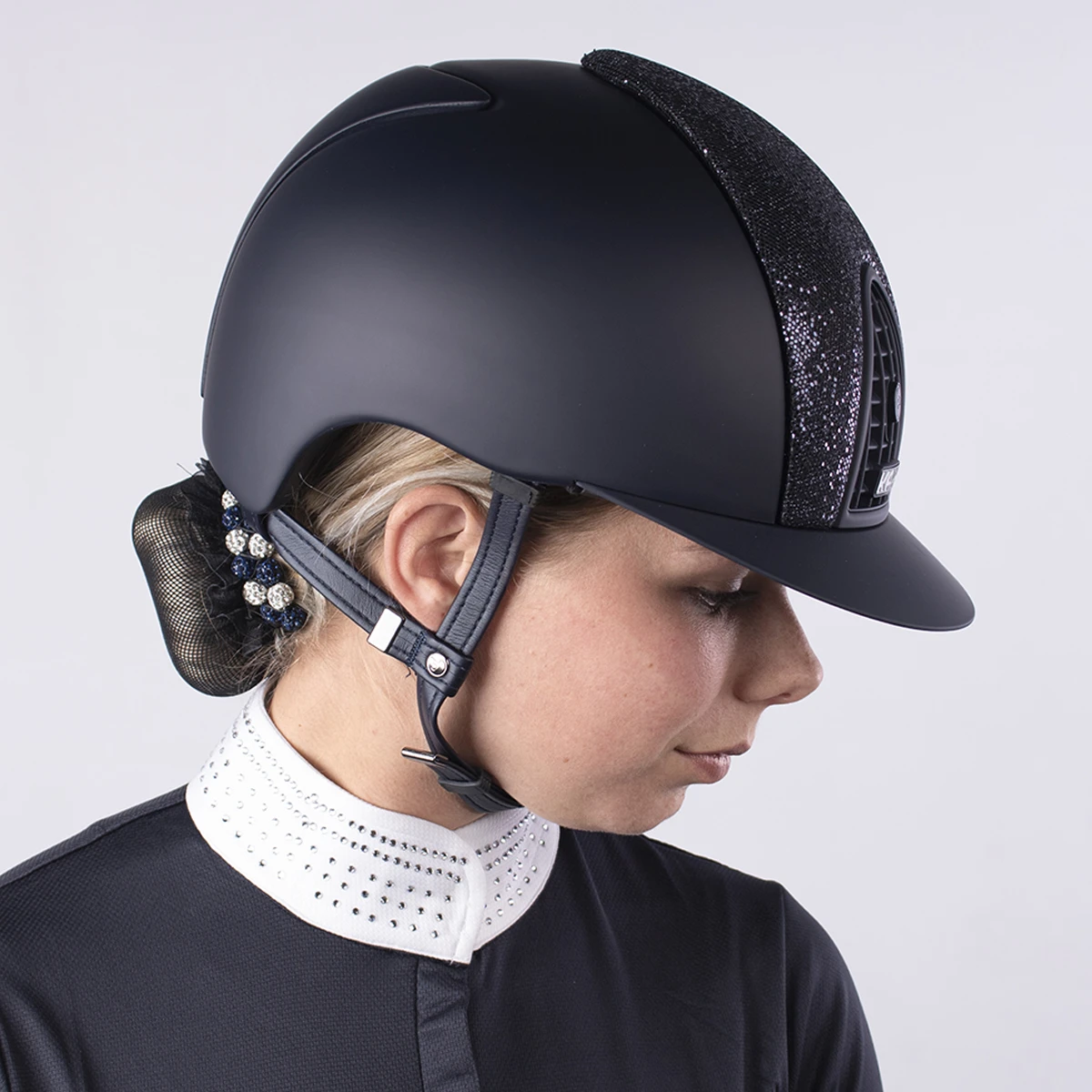- elegante veiligheidshelm welke is afgewerkt met een prachtig glinstende stof