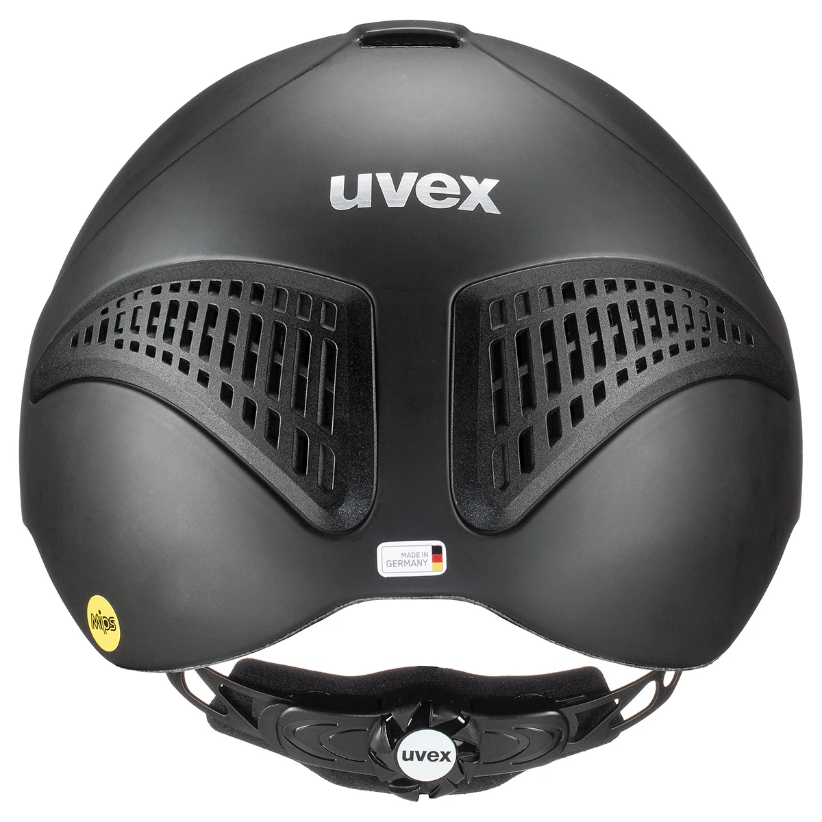 - de veiligheidshelm is voorzien van een verlengde extrene schaal aan de achterkant, die zorgt voor extra bescherming tot aan de achterkant van het hoofd van de ruiter
